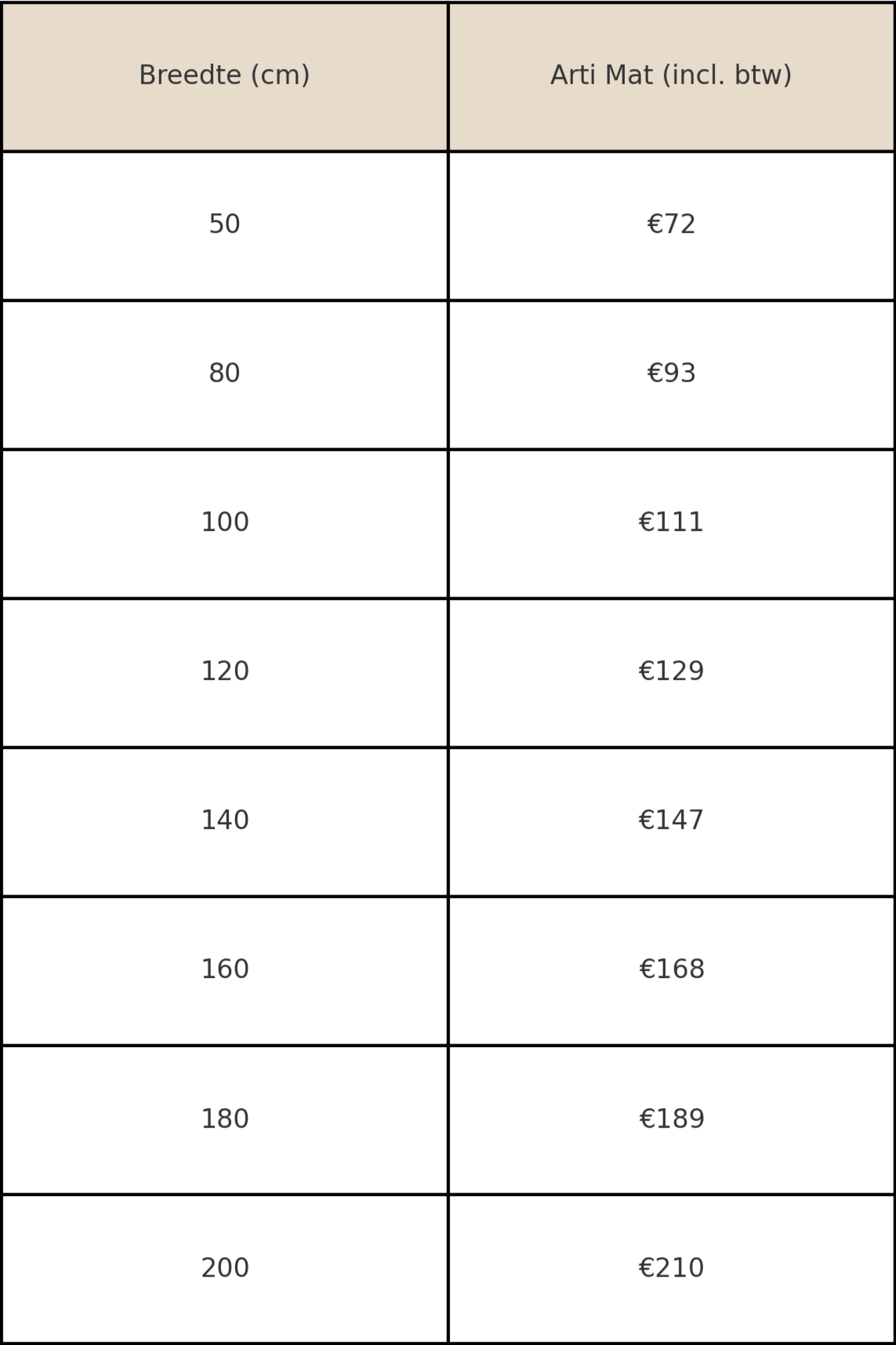 De prijs van een los doek hangt af van het formaat. Hieronder zie je de vanafprijzen per breedtemaat.