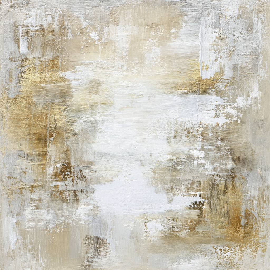 In ‘Zandgloed’ ontmoeten warme aardetinten een zachte schittering van licht. Het werk ademt rust en elegantie, als zon die langzaam over zand beweegt en sporen van warmte achterlaat.
